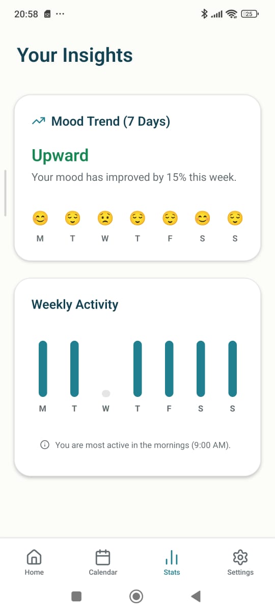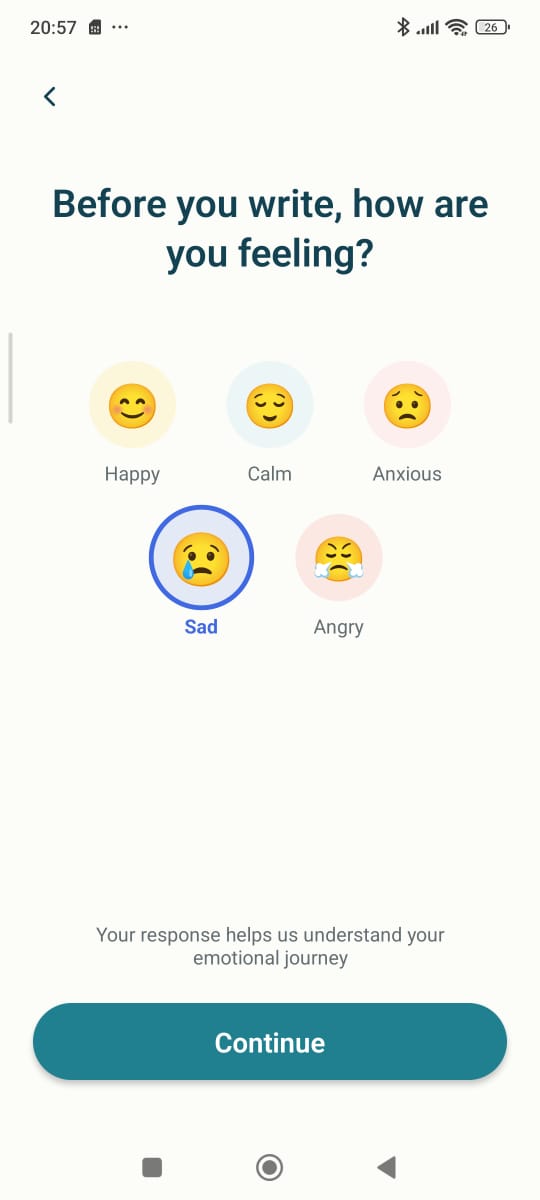 Mental health apps have a 90% abandonment rate within the first week. Users feel overwhelmed by feature-rich interfaces and the pressure to write lengthy journal entries. Sarah, a busy professional, wants to reflect on her day but dreads opening her journal app because it feels like homework.